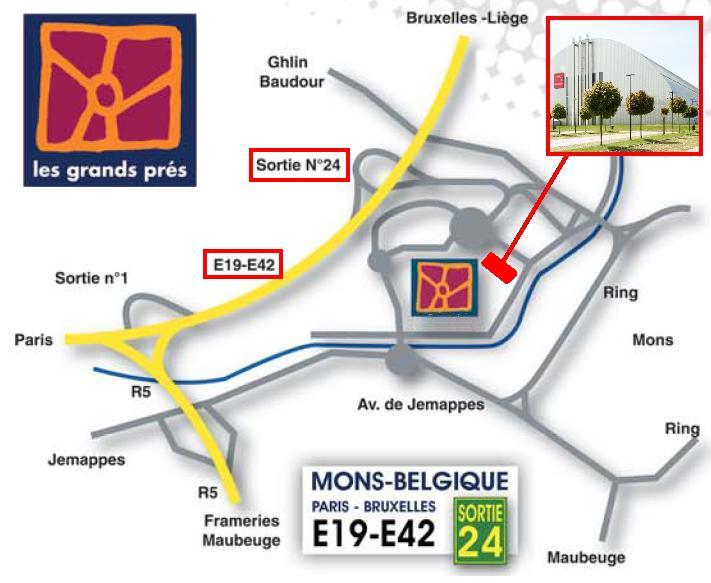Accès: depuis l'autoroute E19/E42 c'est la même, venant de France, de Bruxelles ou de Liège, sortir à la sortie 24 MONS.
